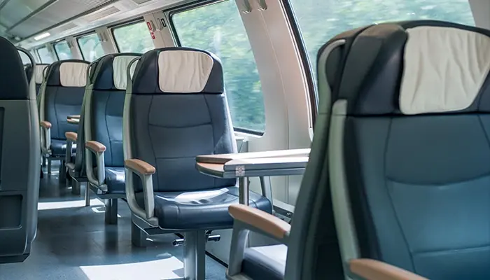 Unser Service umfasst hochwertige Zugsitze für den Schienenverkehr. Wir bieten sowohl die Herstellung neuer Sitze als auch die Sanierung von bestehenden Sitzen, einschließlich Etagenbetten und Betten für Schlafwagen. Unsere Produkte erfüllen höchste Sicherheitsstandards, da sowohl die inneren Schaumstrukturen der Sitze als auch die Stoffbezüge und Lederoberflächen den Anforderungen der EN 45545-2 HL3 entsprechen.